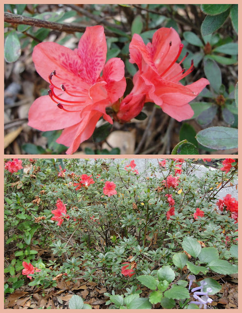 One of my favorite winter flowers is the Fashion azalea. It's a small bush, but it blooms for several months beginning in December, and adds much needed color in the winter garden. The frost killed the first flowers in December, but she's back in flowering mode. (A note to myself to plant some pretty white alyssum in from of them.)